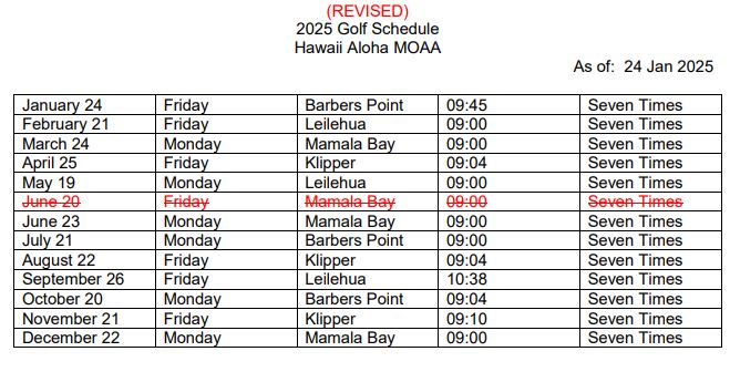 2025 Hawaii Aloha Chapter Golf Schedule Please review and mark the dates on your calendar |