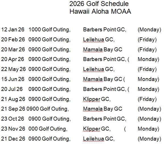 2026 Hawaii Aloha Chapter Golf Schedule Please review and mark the dates on your calendar |